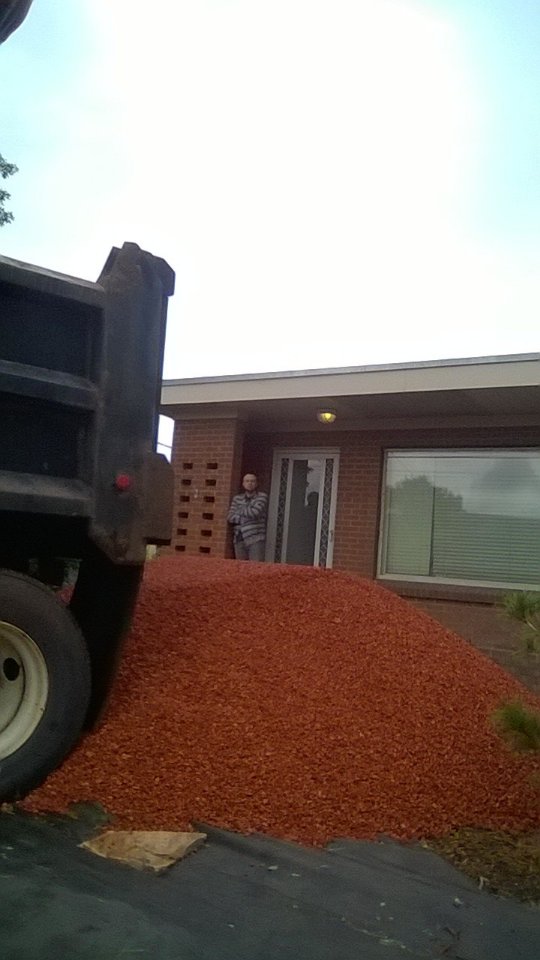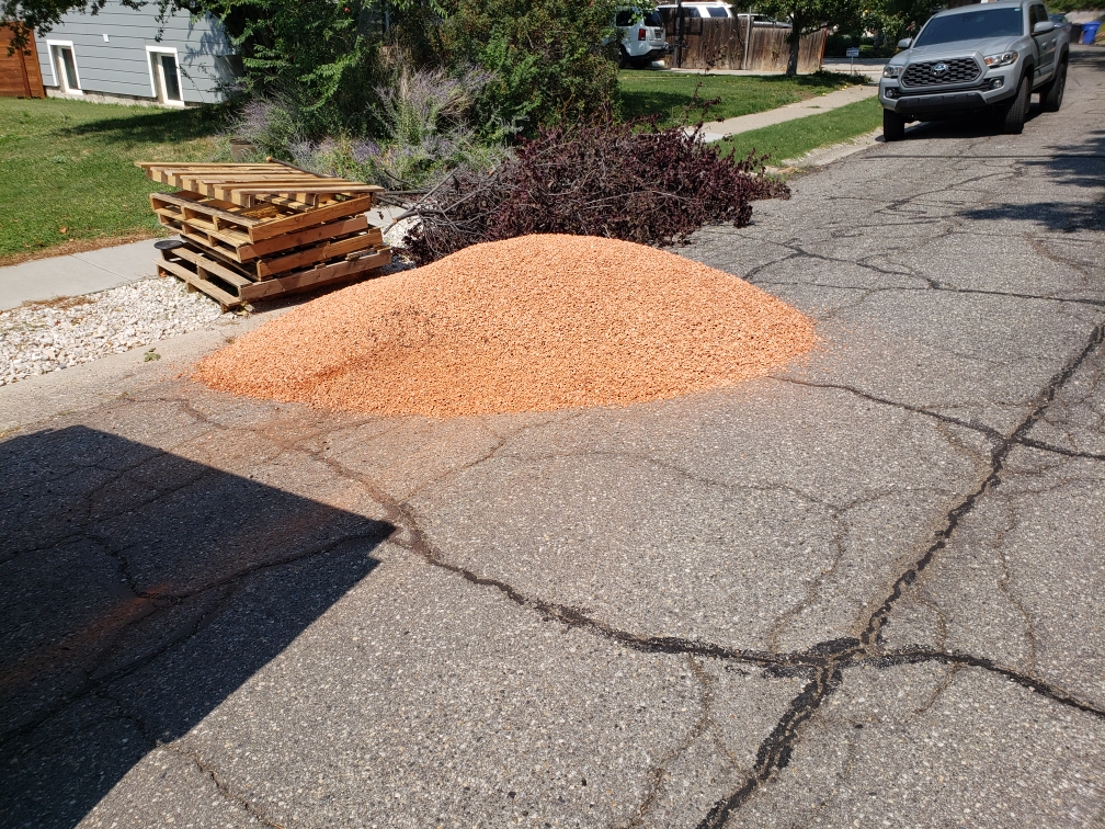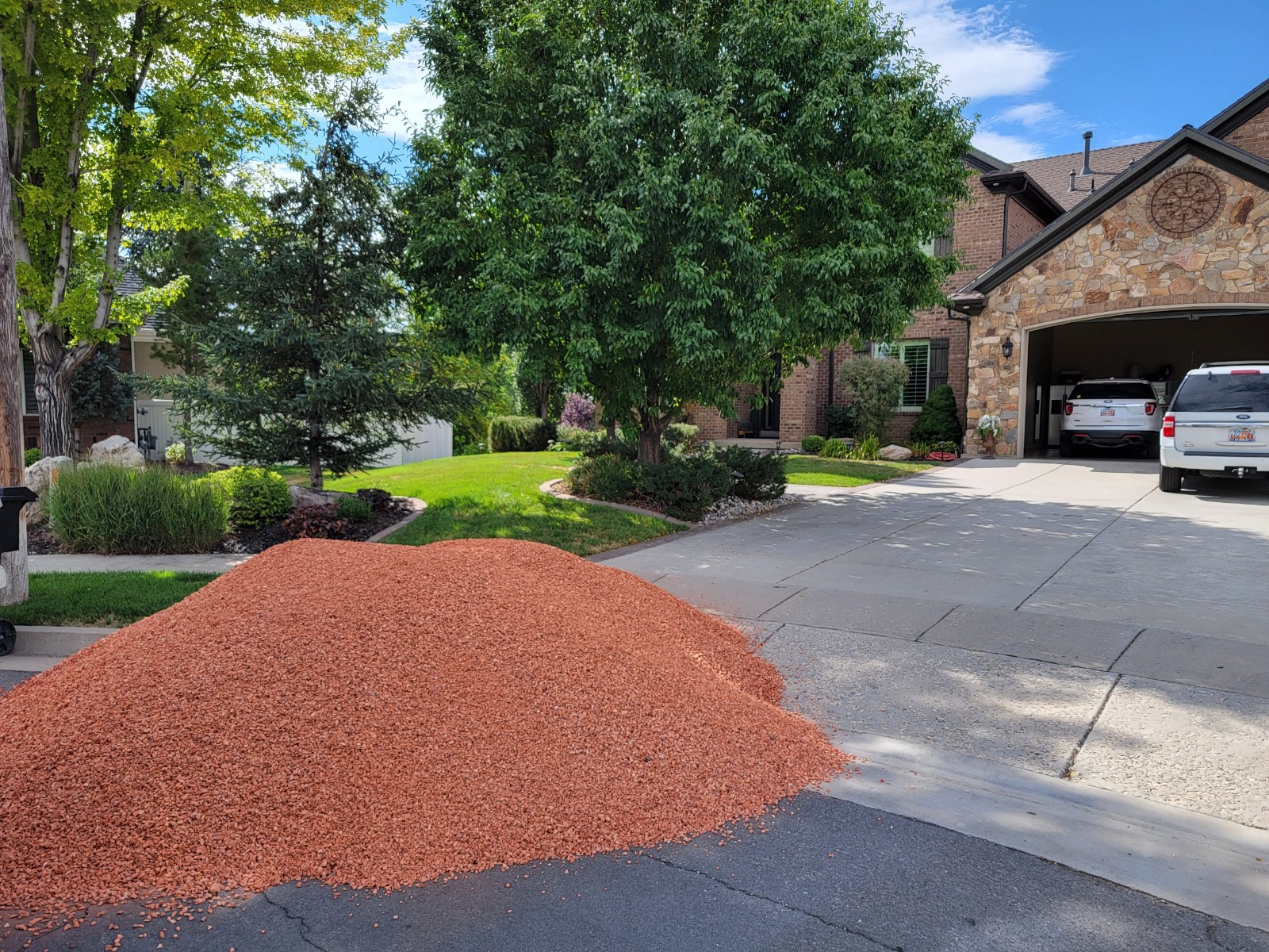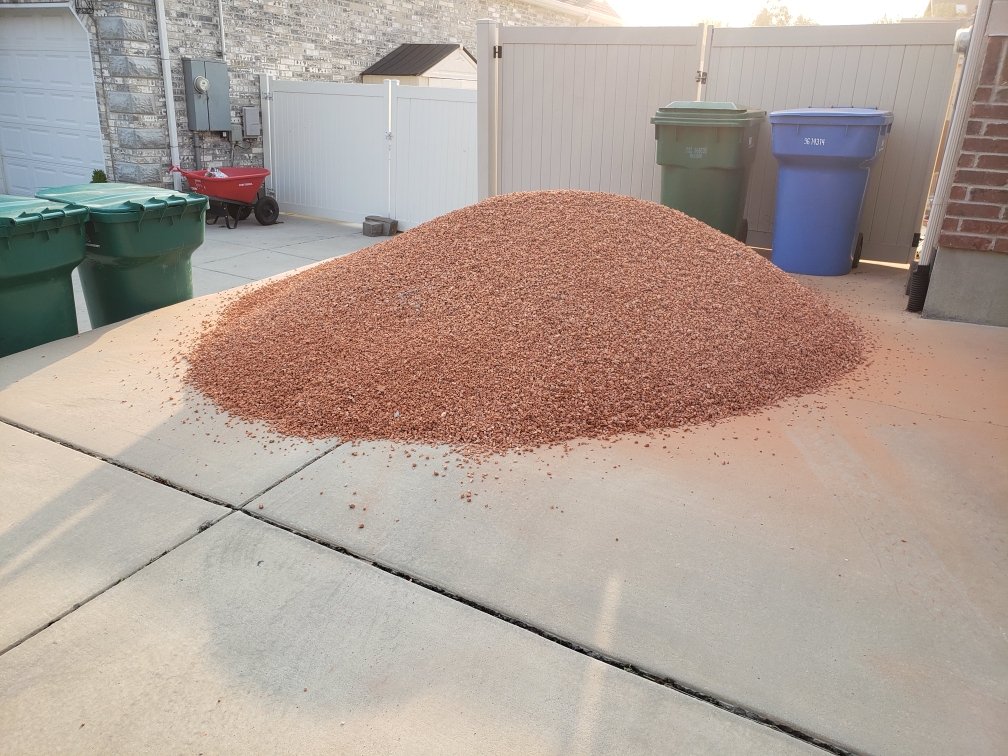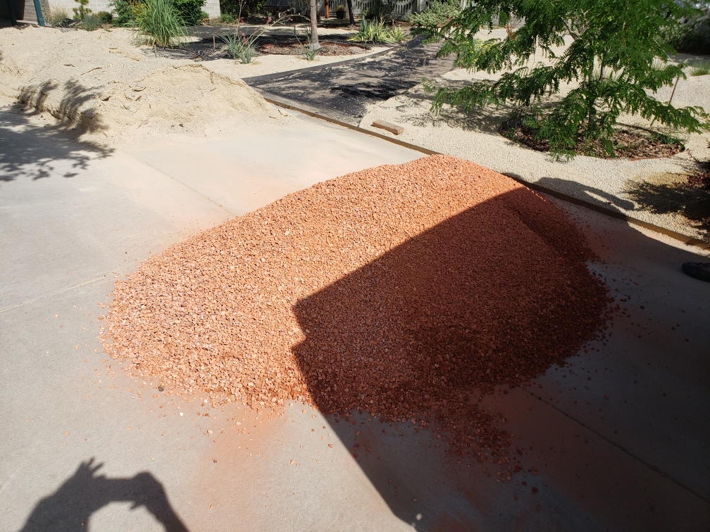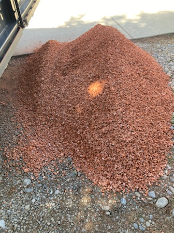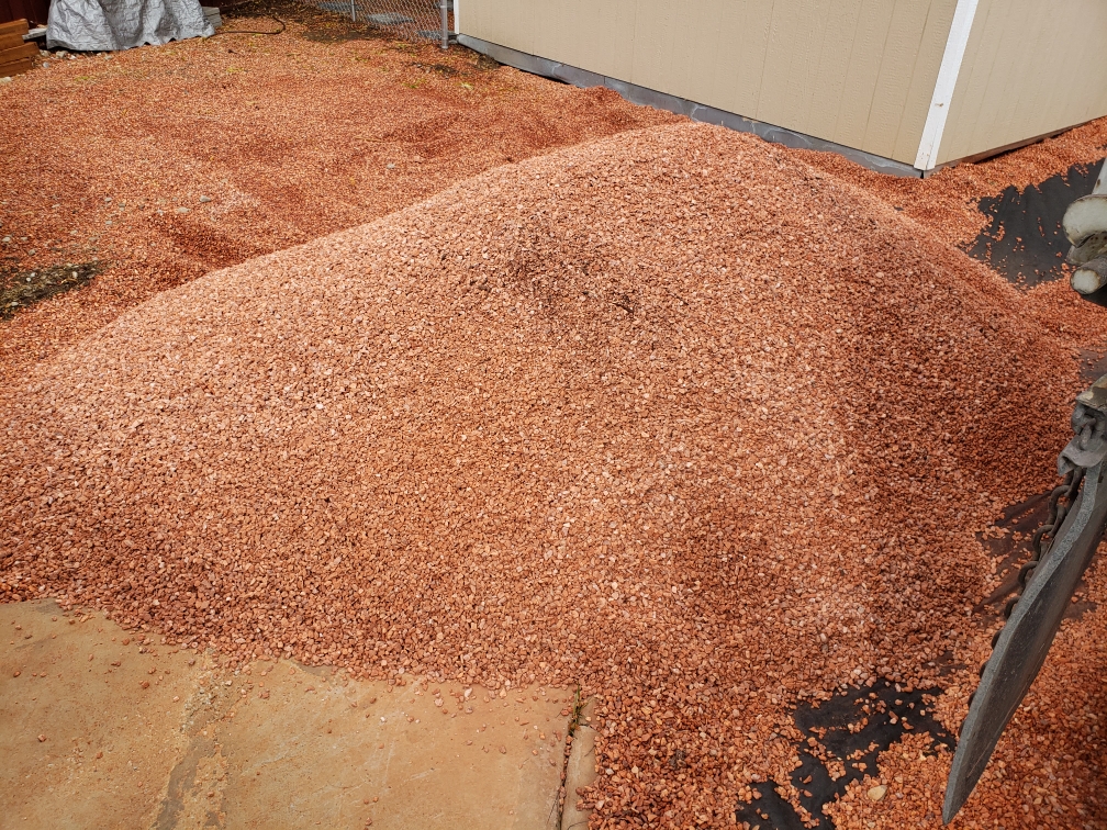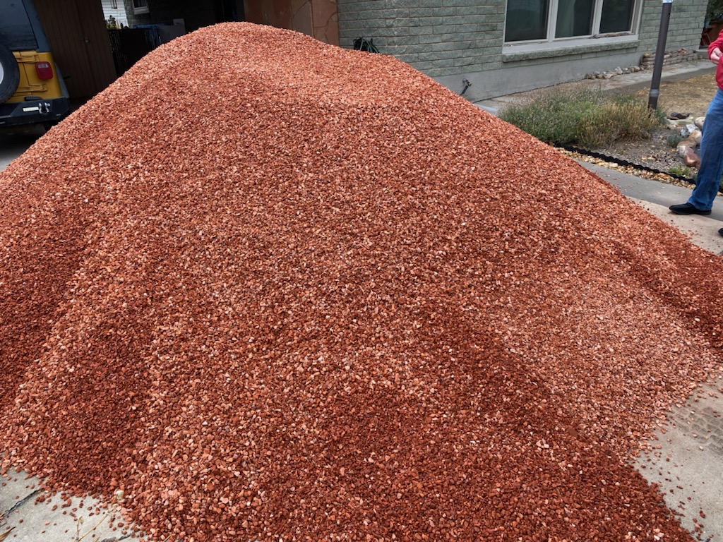 This gravel is a coarse, angular, orange/red material. Commonly used for xeriscaping, walkways, and flower beds. Also referred to as Peaches and Cream. Availble in a varity of sizes.