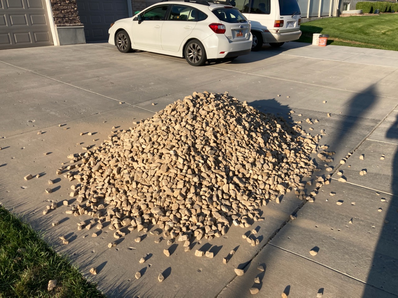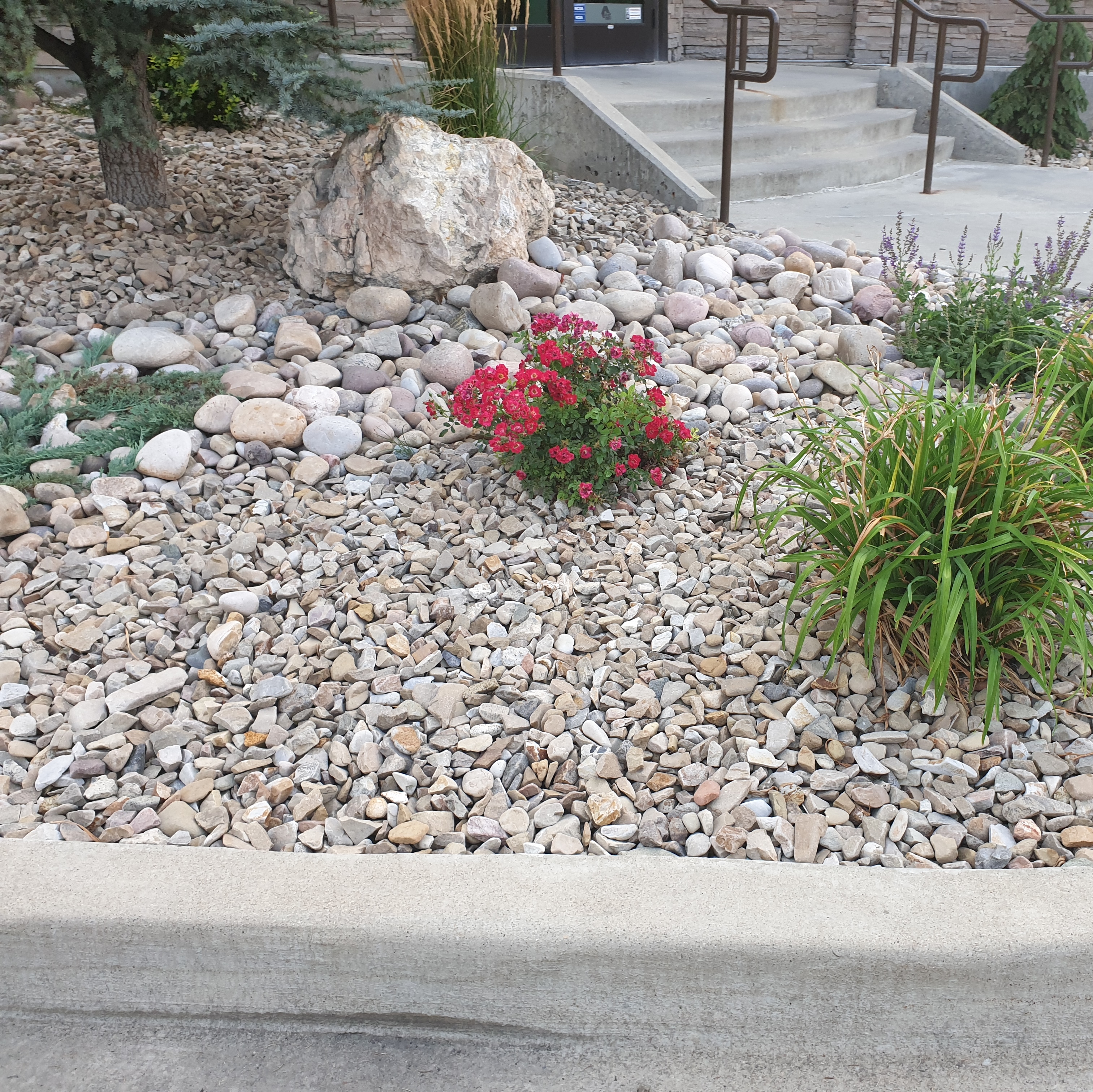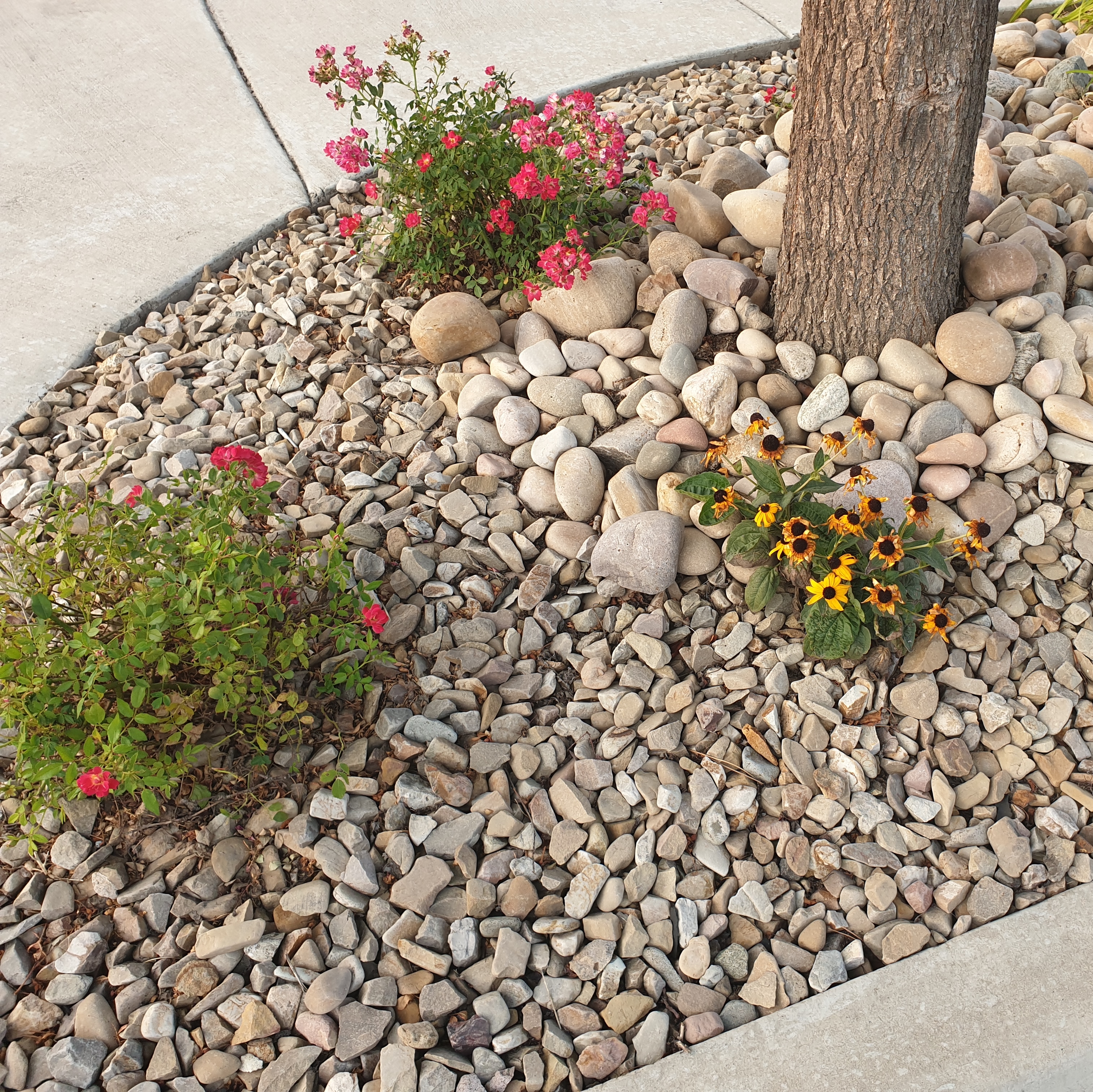 This cobble is a rough, round, tan material with tones of pink, gray, and white. Commonly used for xeriscape landscaping and flower beds. Available in a variety of sizes.