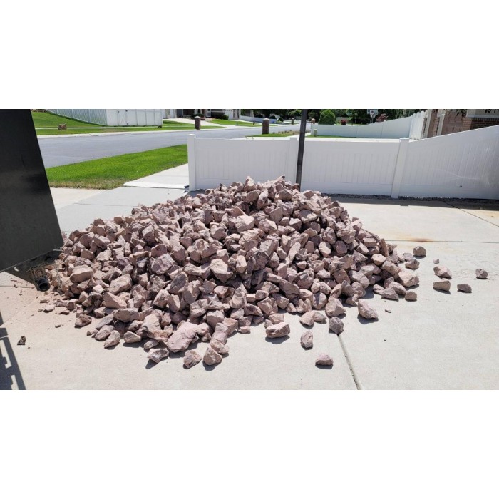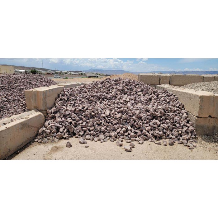 This cobble is a coarse, angular, multicolored material with tones of pink, purple, white and orange. Commonly used for xeriscaping, gabion baskets, and water features. Also available in boulders.