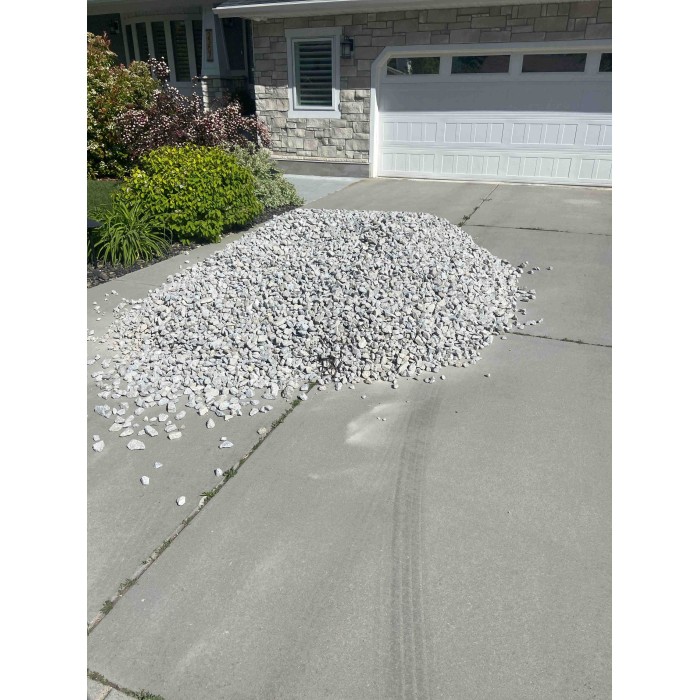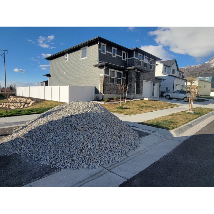 This cobble is a coarse, angular, gray speckled material. Commonly used for xeriscaping and flower beds. Available in a variety of sizes.