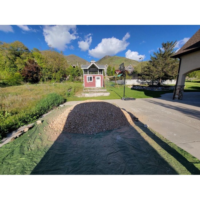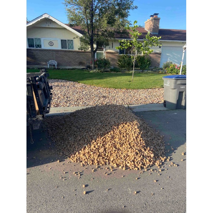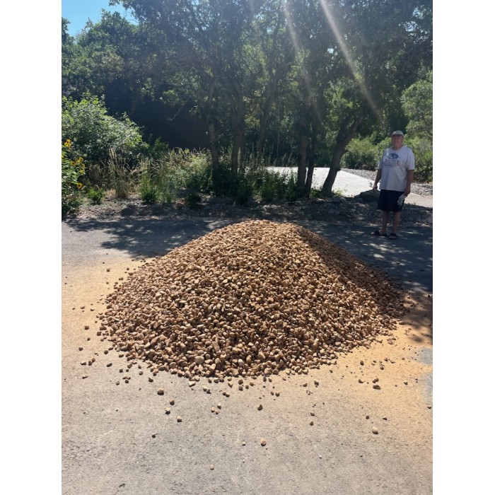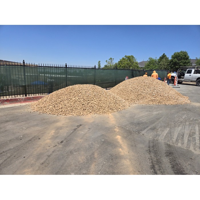 This cobble is a coarse, angular, gray speckled material. Commonly used for xeriscaping and flower beds. Available in a variety of sizes.