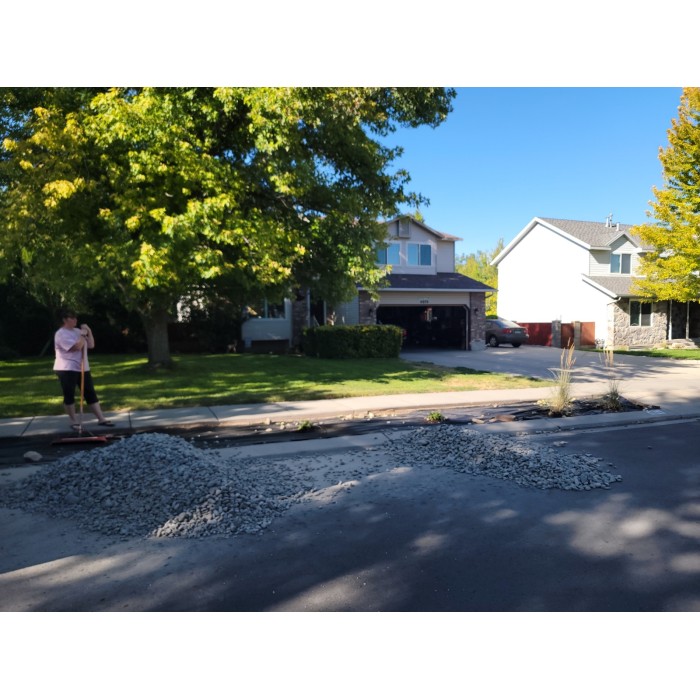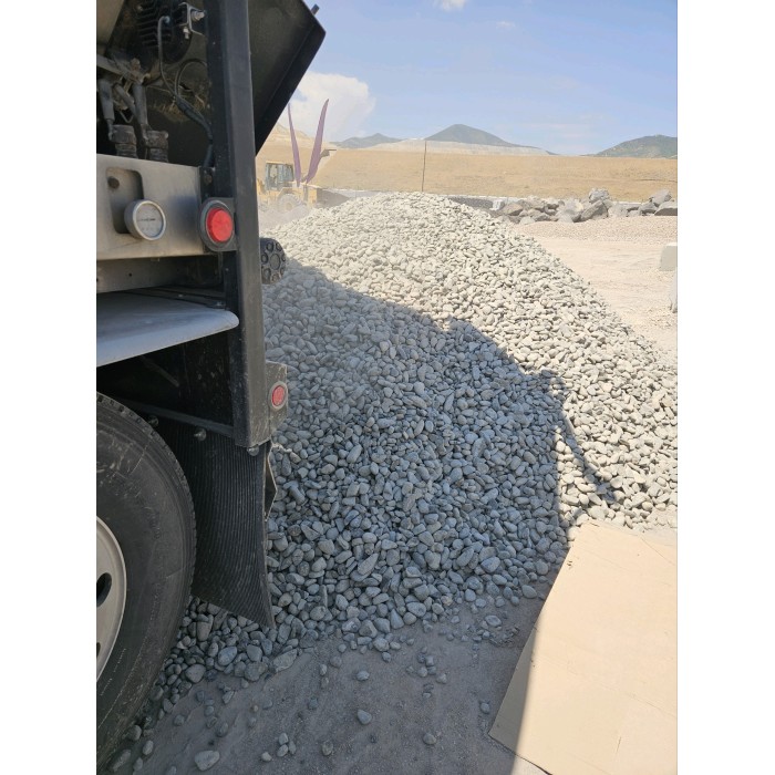 This cobble is a coarse, angular, gray speckled material. Commonly used for xeriscaping and flower beds. Available in a variety of sizes.