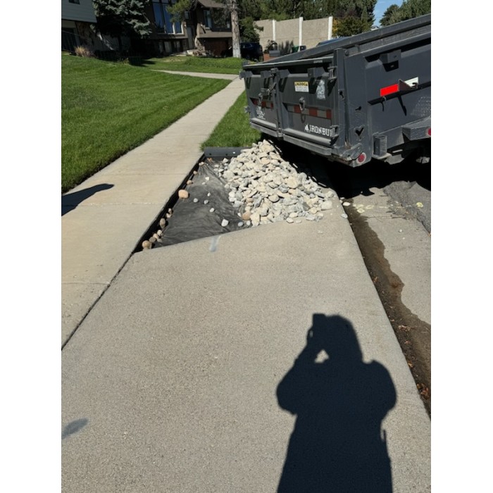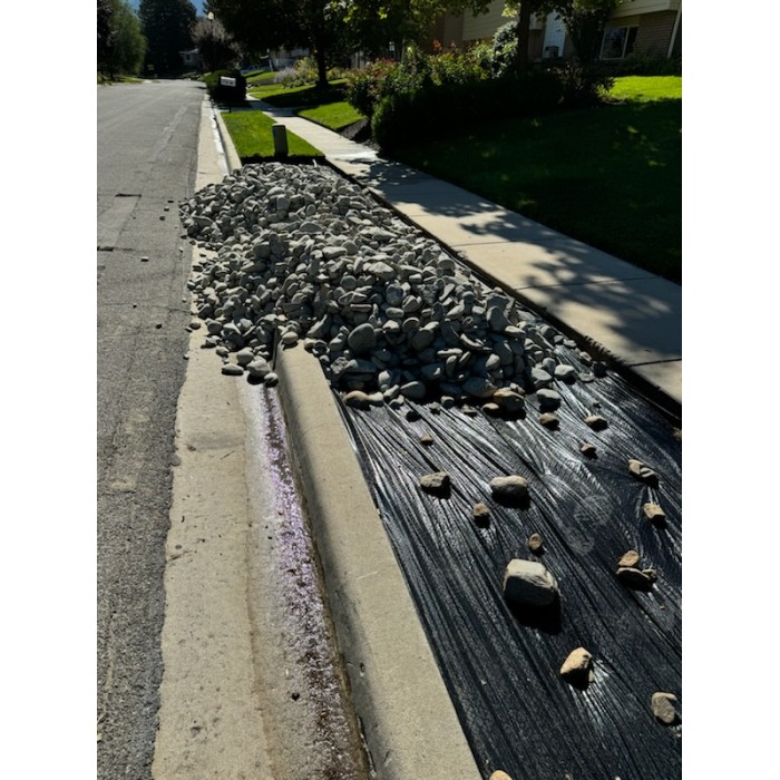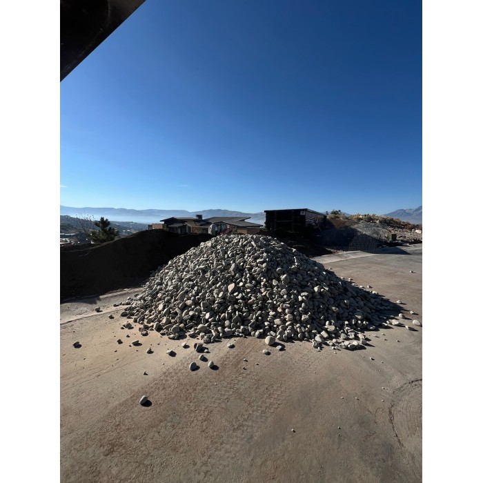 This cobble is a coarse, angular, gray speckled material. Commonly used for xeriscaping and flower beds. Available in a variety of sizes.