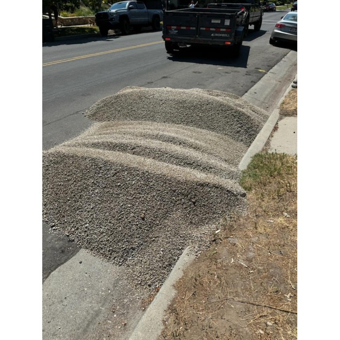 This gravel is a coarse, angular, light gray material. Commonly used for xeriscaping, flower beds, and play areas. Available in a variety of sizes.