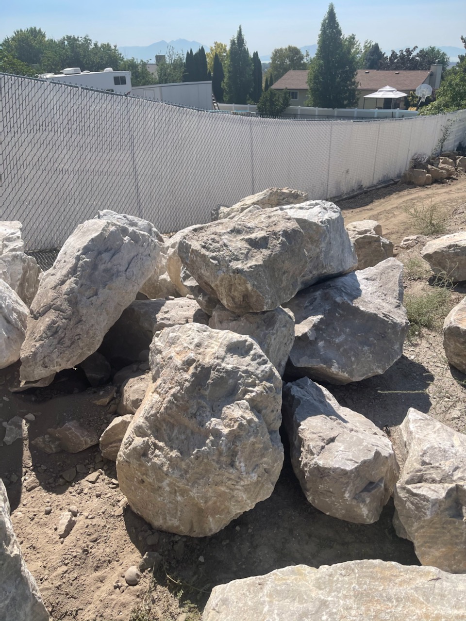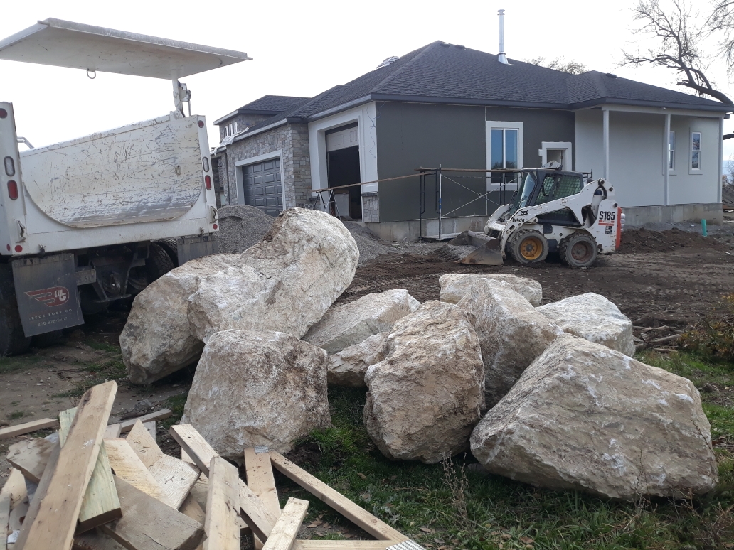 Previously known as Bolinder Boulders. Coarse, angular, tan/white material. Commonly used for landscaping accents and rock walls. Boulders are available in a variety of sizes and colors.