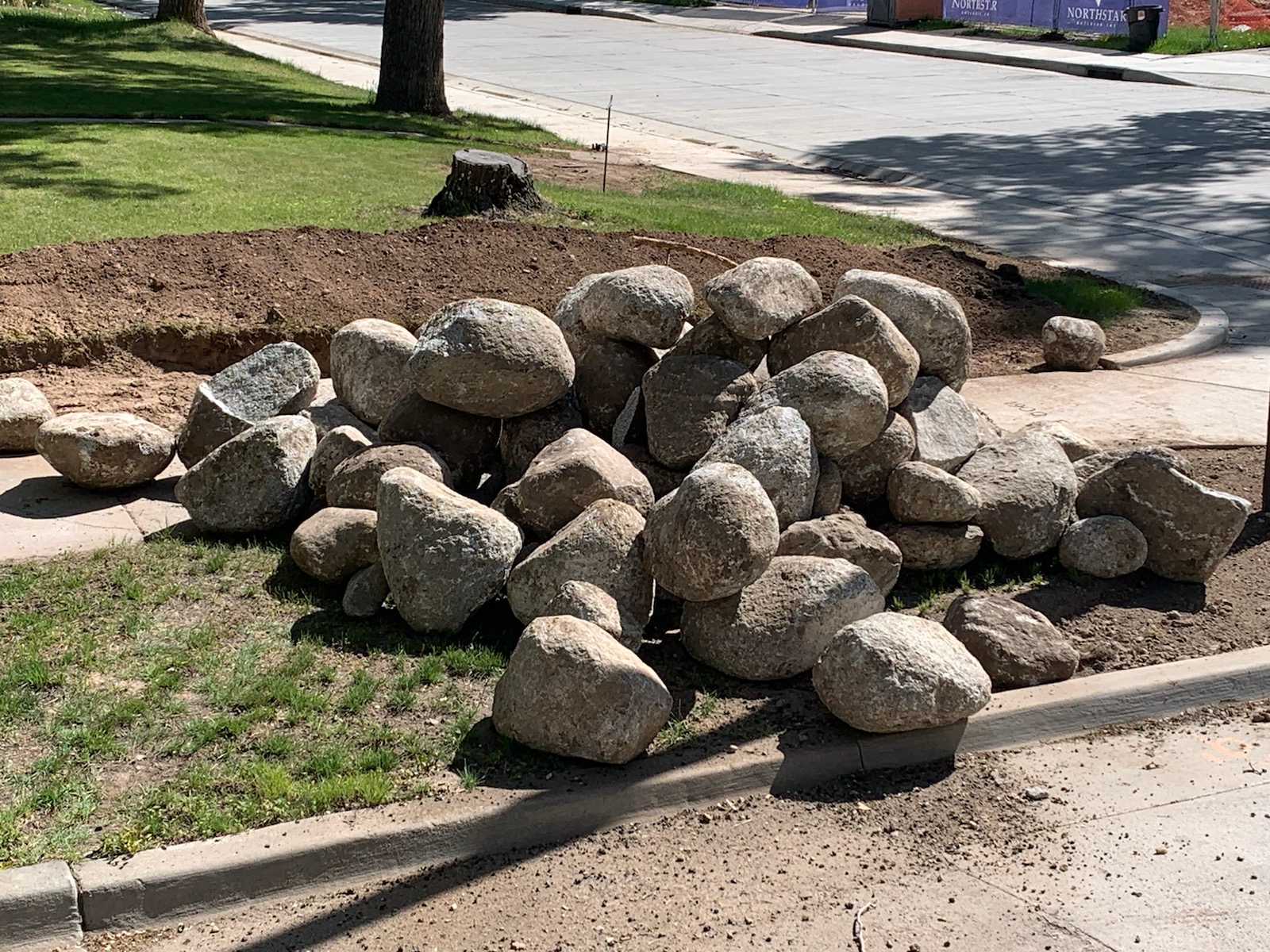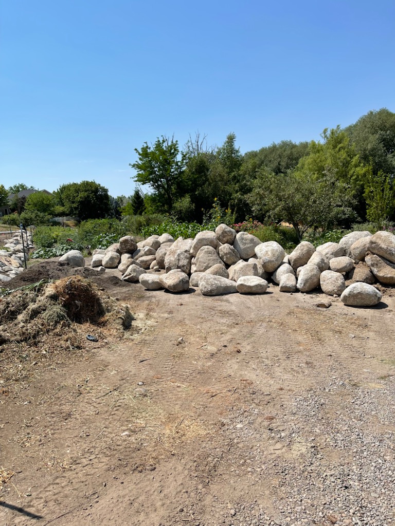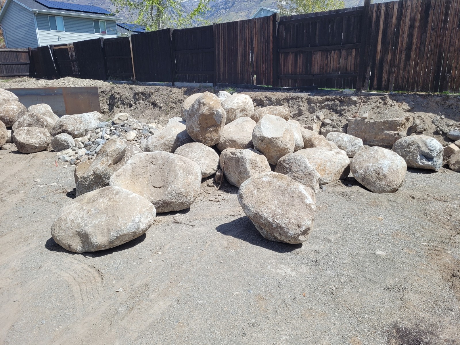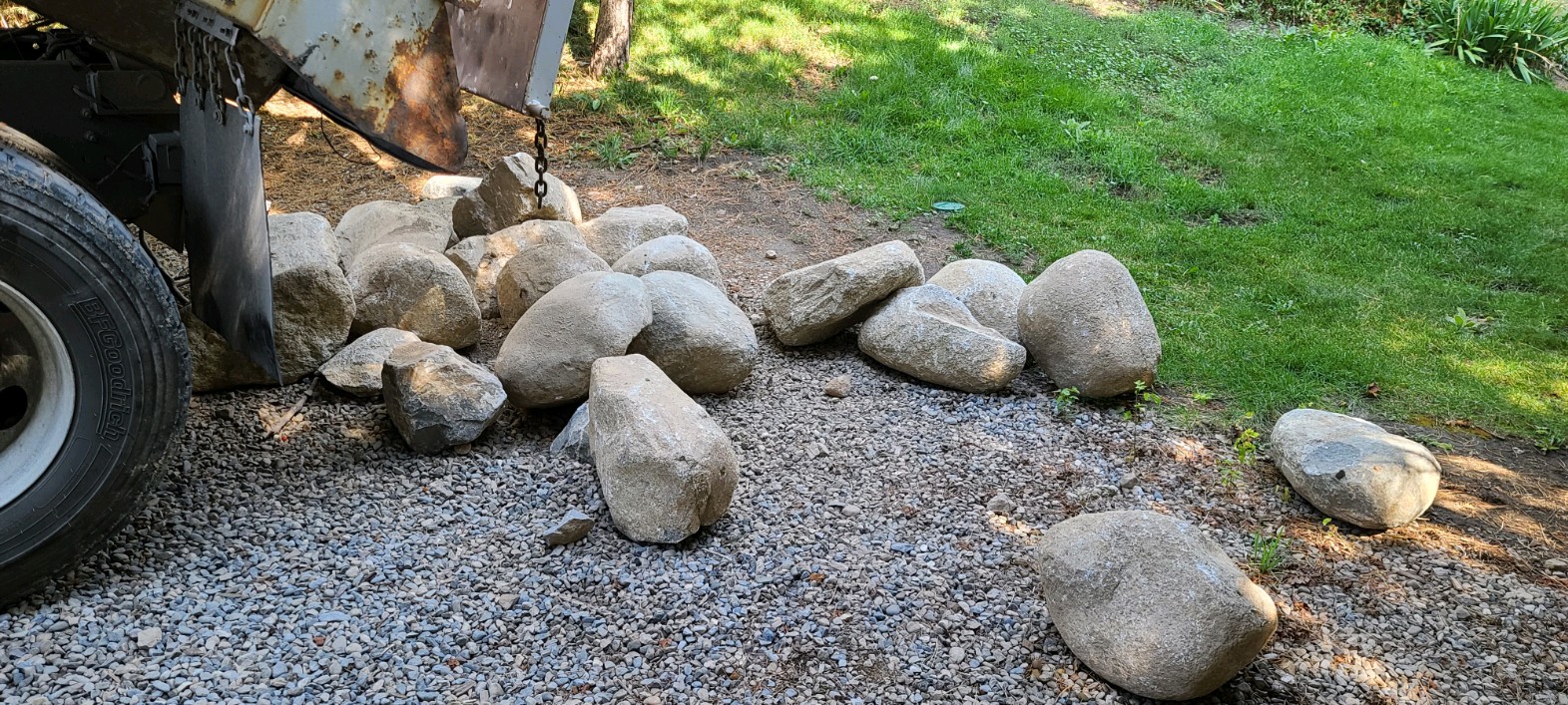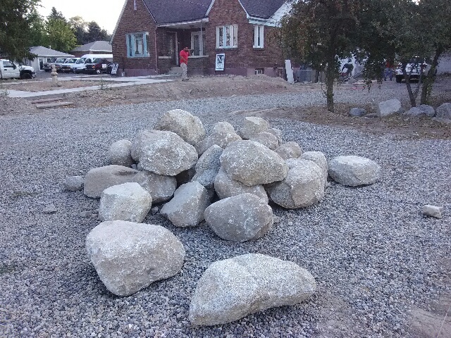 These boulders are a coarse, round, gray speckled material. Commonly used for landscaping accents and rock walls. Boulders are available in a variety of sizes and colors.