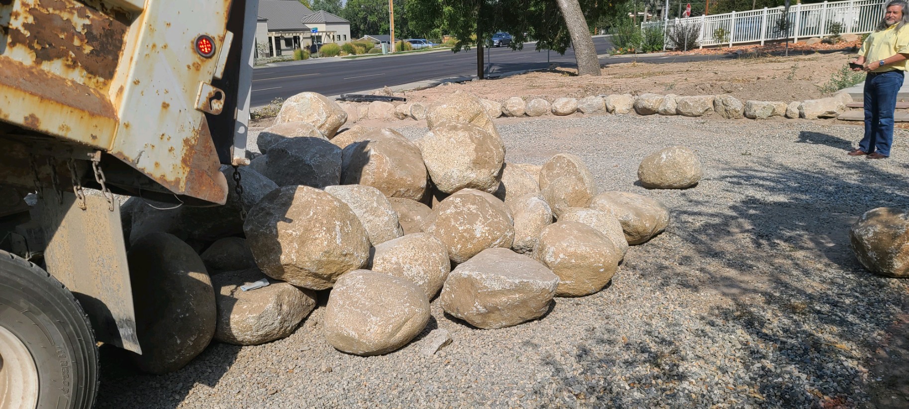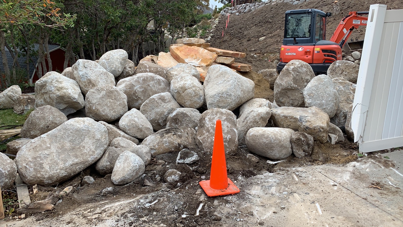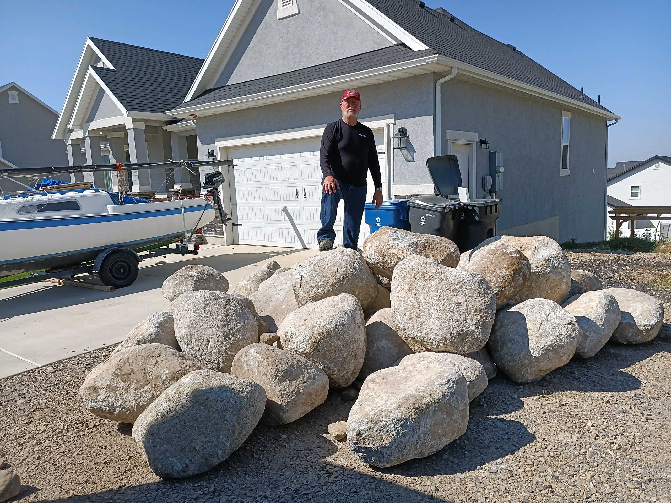 These boulders are a coarse, round, gray speckled material. Commonly used for landscaping accents and rock walls. Boulders are available in a variety of sizes and colors.