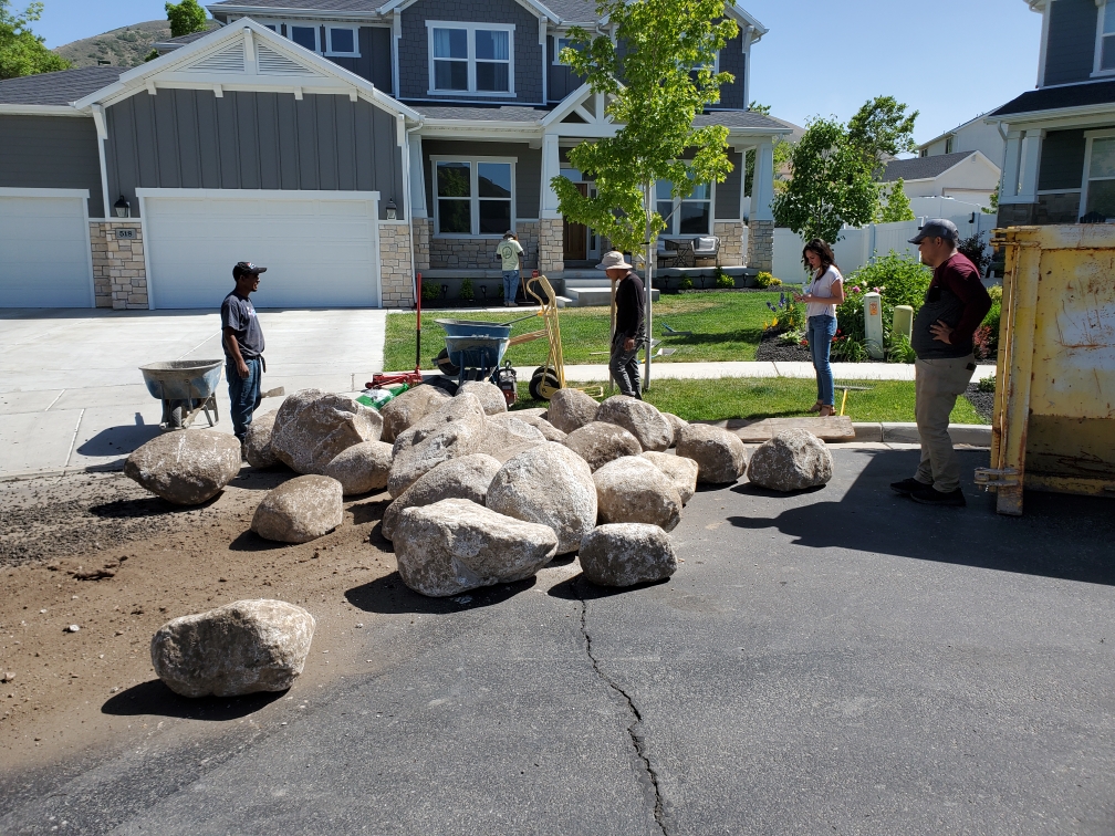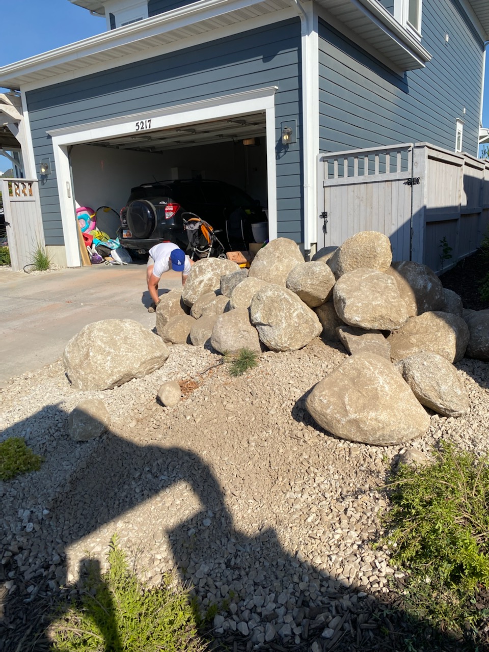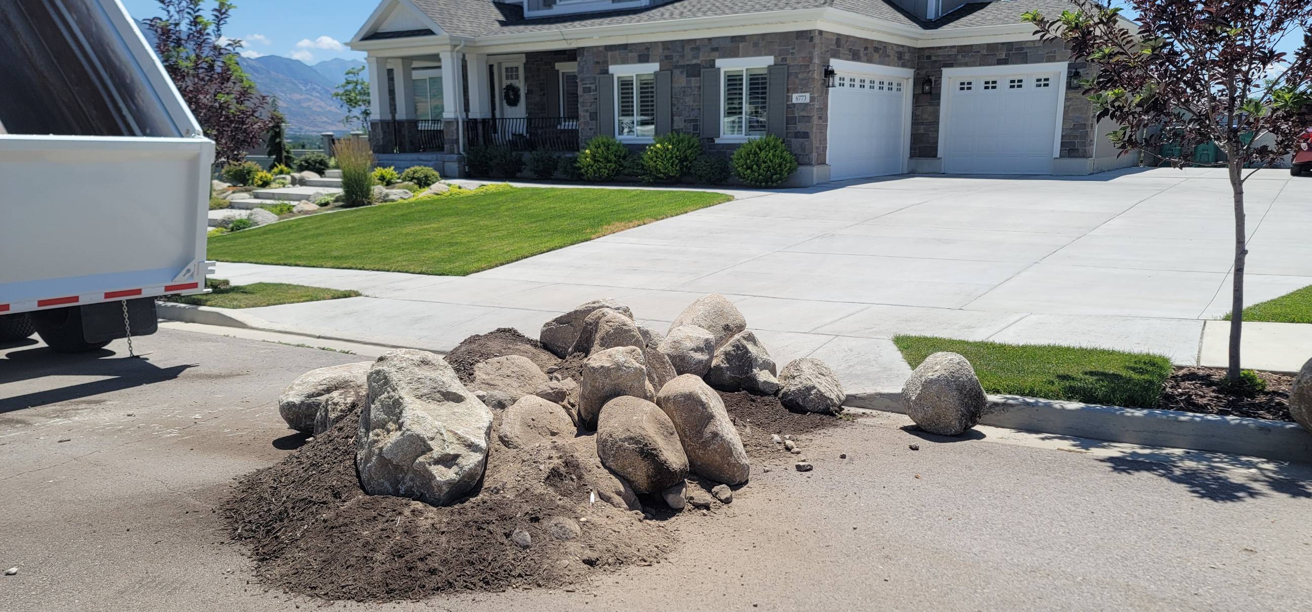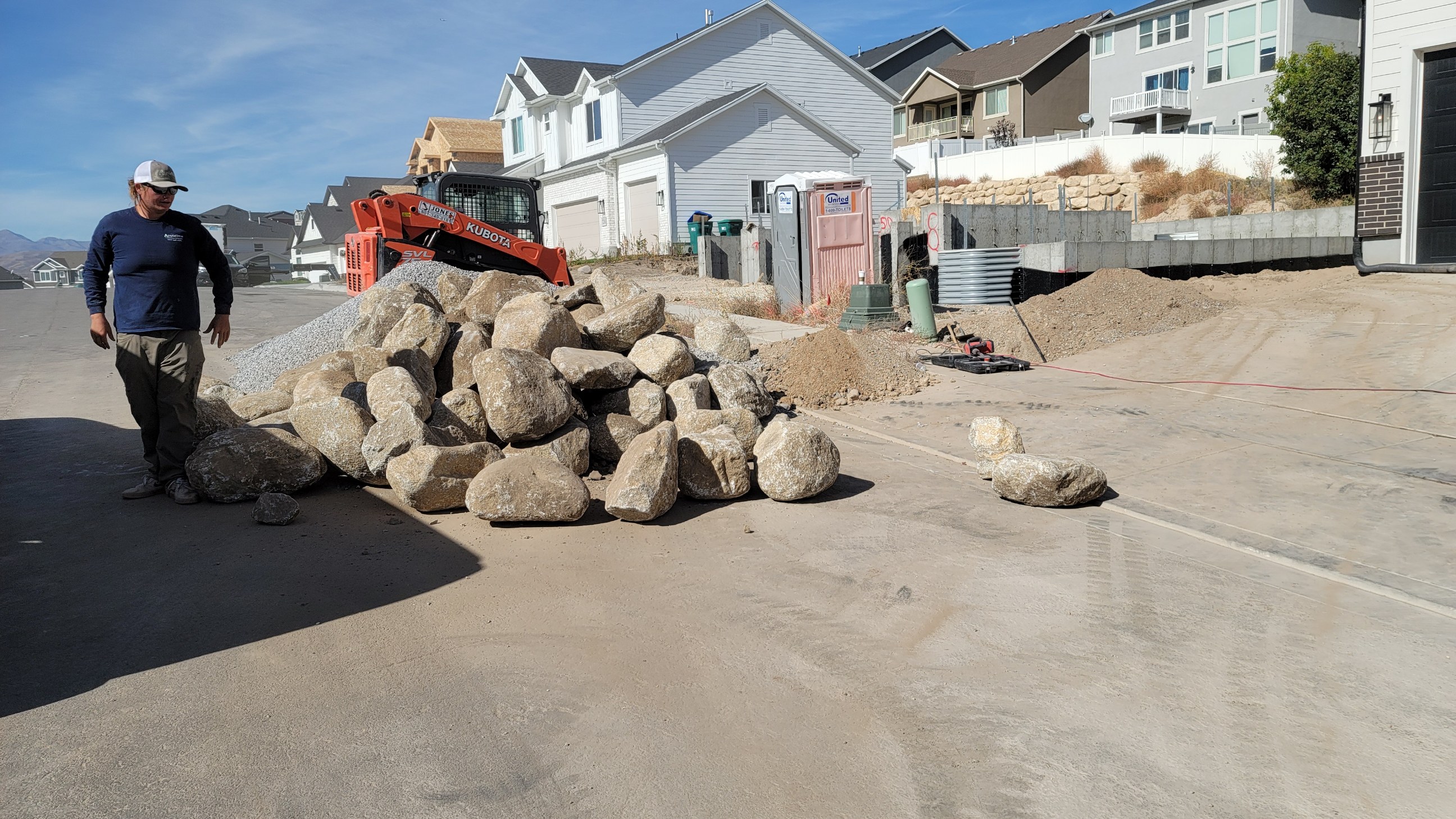 These boulders are a coarse, round, gray speckled material. Commonly used for landscaping accents and rock walls. Boulders are available in a variety of sizes and colors.