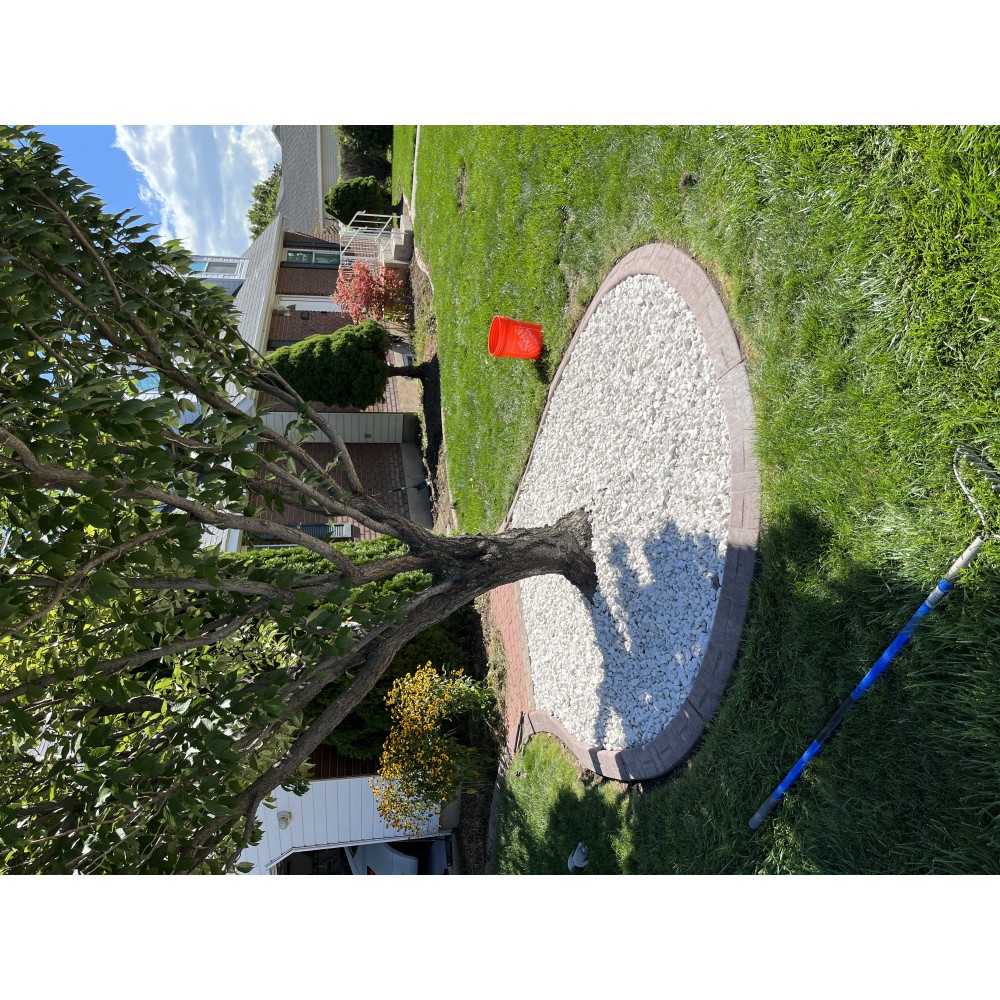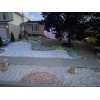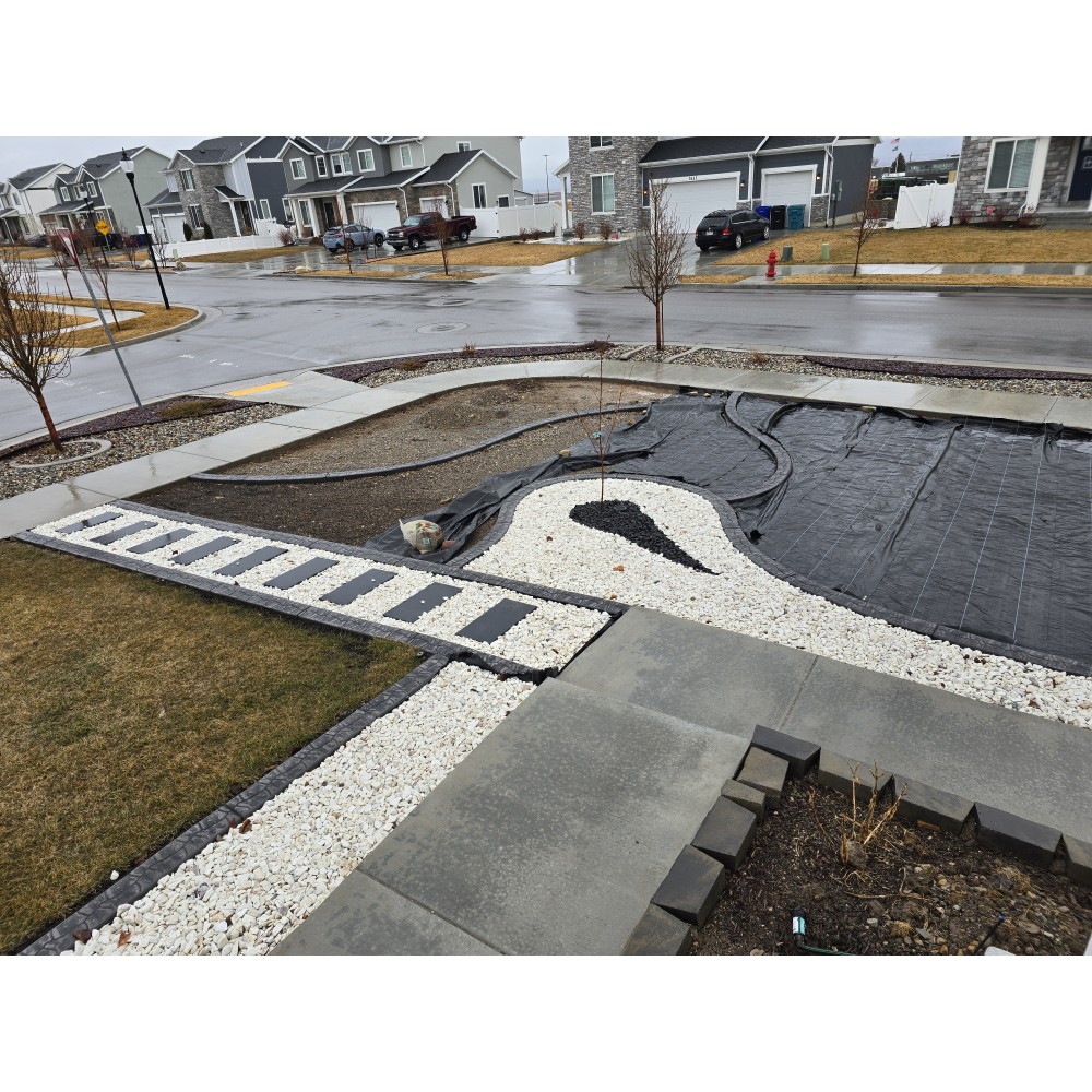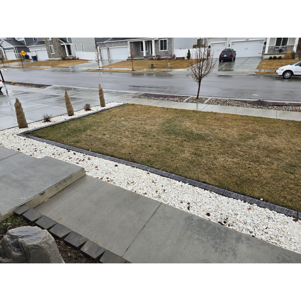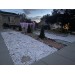 This gravel is a coarse, angular, white material with some dark pieces in it. Commonly used for xeriscape landscaping.