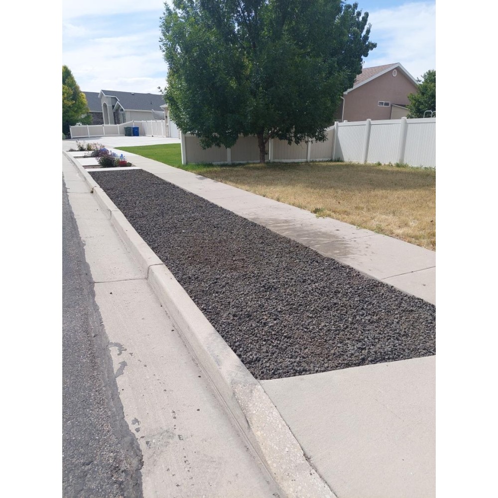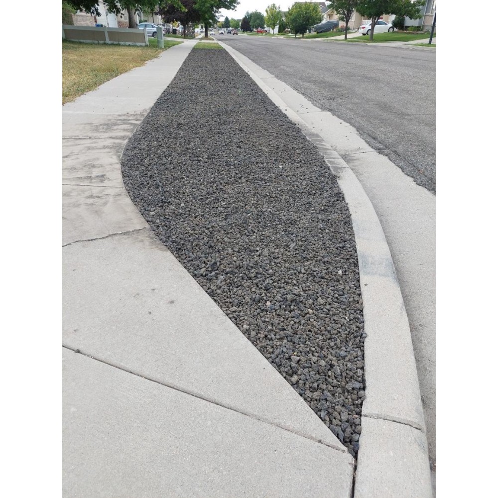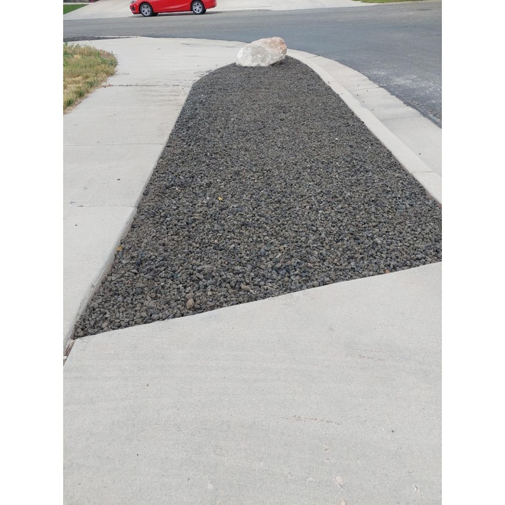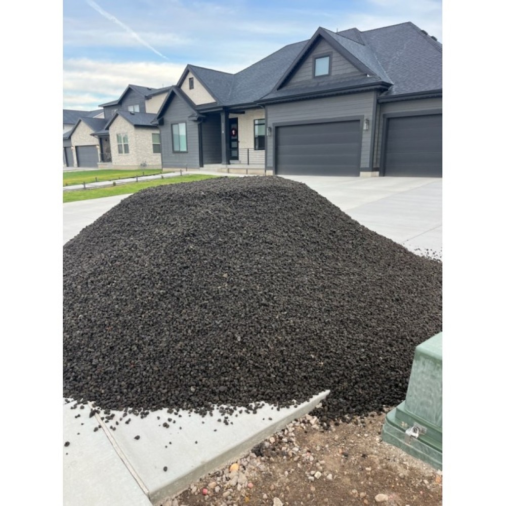 This is a poris, round, black volcanic material. Commonly used for xeriscaping, flower beds, and fire pits. Also available in a variety of sizes.