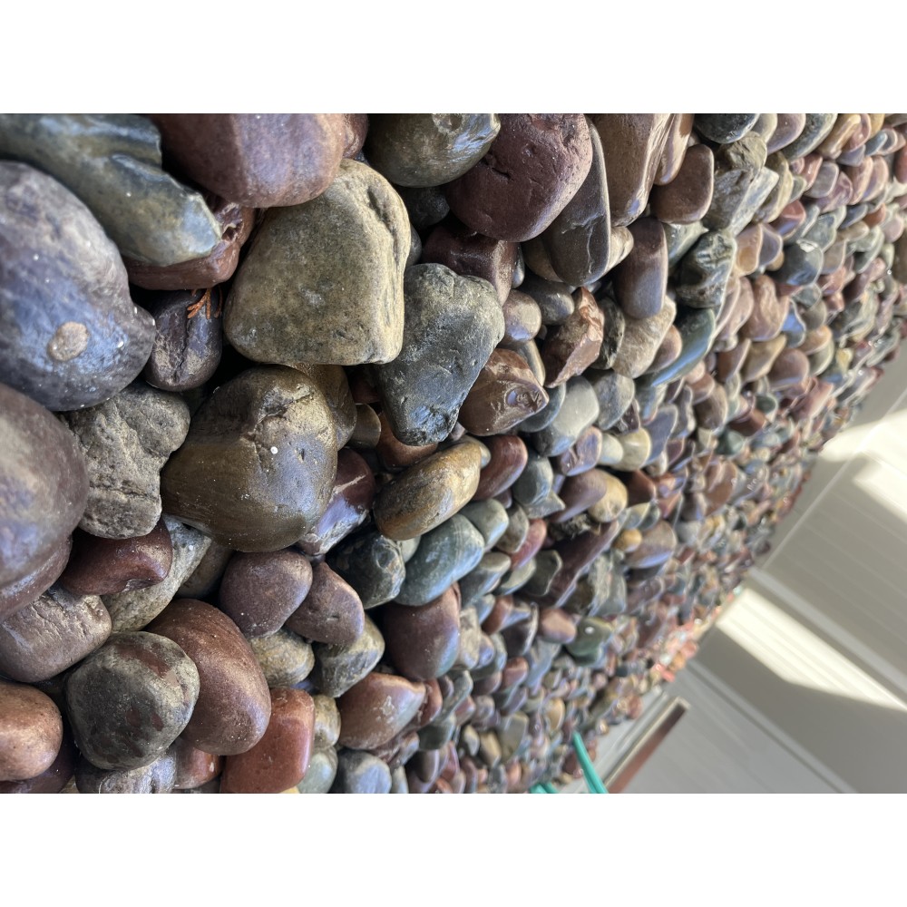 This cobble is a smooth, round, multicolored material. Commonly used for xericscaping, gabion baskets, flower beds, and water features. Available in a variety of sizes.